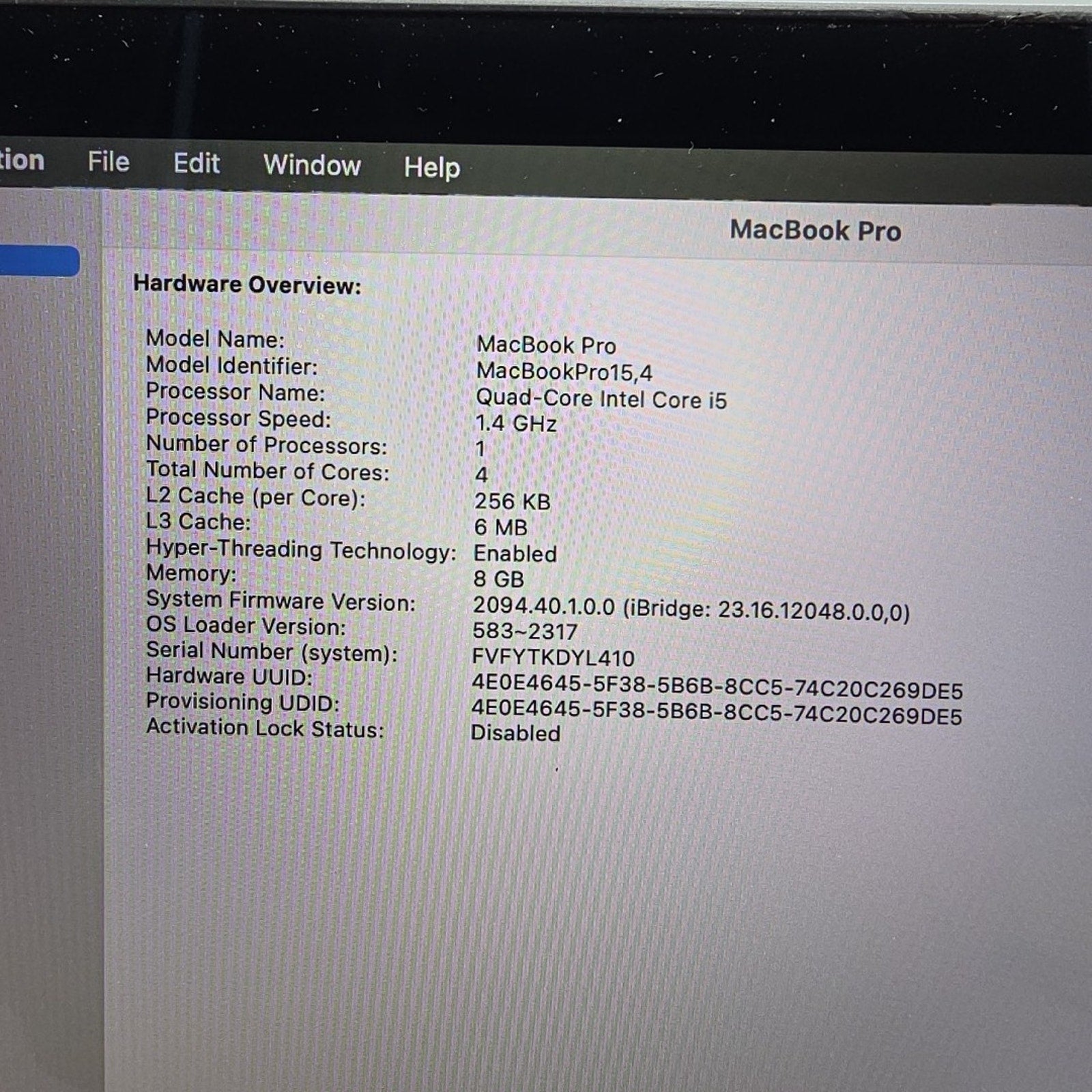 2019 Apple MacBook Pro 13.3" i5 1.4GHz 8GB RAM 256GB SSD A2159 l192